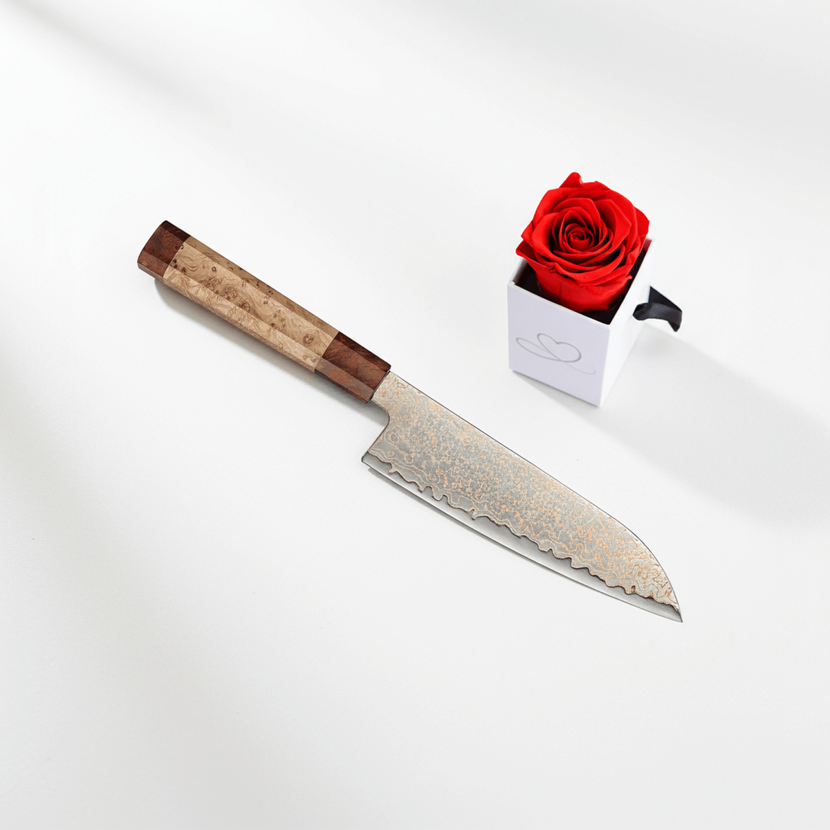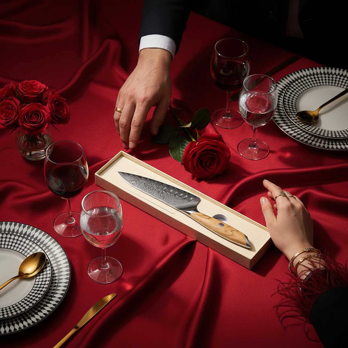 Mit unserem Geschenkset erhältst du zusätzlich eine langlebige Infinity Rose in Rot – das Symbol der Liebe. In Kombination mit dem hochwertigen Damastmesser entsteht ein besonderes Geschenk, das Herzen berührt und zu gemeinsamen Kochmomenten einlädt – ideal für Valentinstag, Geburtstage oder Mutter-/Vatertag.